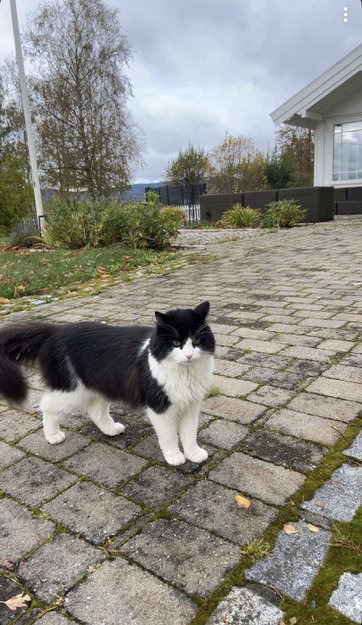 Den har oppholdt seg rundt huset til moren og faren min i perioder. Det har pågått en stund så de har dessverre begynt å fore den. Har klappet katten men blir sint hvis man prøver å løfte den. Så får ikke med den til dyrlegen.