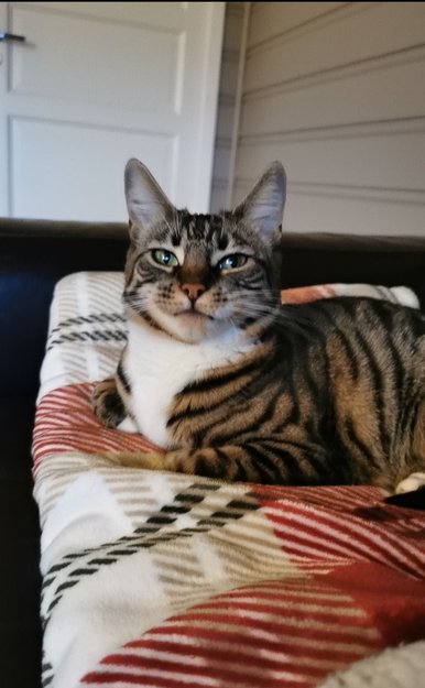 Mye mindre en vanlige voksen katter, hun er tam men ikke veldig kosete