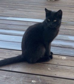 Simba er helt svart, med kort myk pels. Han liker å være ute og liker å klatre i trær... Han er snill og kosete, ikke redd for mennesker. Han er forholdsvis liten til å være hannkatt, en slank og stilig type 😻