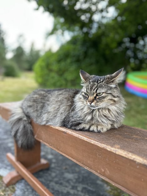 Fredag - søndag var vi på hyttetur. Haldis er en utekatt, og er glad i å være ute. Garasjen var på gløtt så hun kunne komme seg inn dit for å søke ly, og få i seg mat og vann. Kattepasser var innom på lørdag, men kunne ikke finne henne. Matskålen var spist av både på lørdagen og søndagen, men om dette er Haldis vet vi jo ikke. Vi har ikke sett snurten av henne siden vi kom midt på dagen på søndagen. Hun pleier å stå på trammen, eller komme ganske raskt etter at vi har kommet hjem. Og hun går sjeldent lengre enn til litt forbi Kiwi og bort til saga. Vi har gått på stedene vi vet hun kan være og ropt på henne, men hun er ikke å finne. Matskålen har stått på trammen i natt, og vi har hatt kamera ut mot trammen - og det er kun en nabokatt som har vært der. Hun pleier nesten alltid å stå på trammen om morgenen..