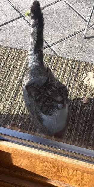 Brunstripete pus som begynte å henge rundt utenfor hos oss på Bekkestua/Stabekk for noen uker siden. Hvit på bryst og poter. Kosete, leken og nysgjerrig, virker ikke redd, ikke spesielt tynn. Men kommer nå oftere og ganske kontaktsøkende og vil inn. Vi tenkte først at det bare er en sosial pus, men kanskje noen savner den?
