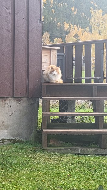 Katt som oppholder seg i Garmo, ser ikke ut til å kunne oppdrive noen eier. Ikke synlig skadet.