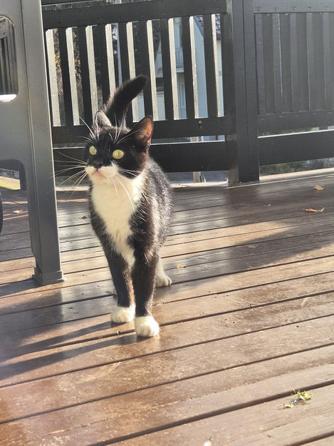 De valgte å ta den inn etter den hadde oppholdt seg der en ukes tid uten å mate. Katten ble sjekket for chip hos veterinær, ingen funn.