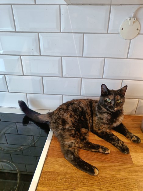 Pusen har gått utenfor mannsverk boliglag i mange døgn. Den fulgte etter folk og ville inn. Dagen før jeg tok den inn, var det andre som etterlyste eier her på mannsverk. Vi har ikke observert denne pusen gående her før. Pusen er delt på mange facbooksider, og vi gjør det vi kan får å finne eier. Jeg har fått tilgang til bil i ettermiddag, så da skal vi sjekke om den har chip. Jeg tror det er en jente, ikke helt sikker. Pusen er tam og tillitsfull.