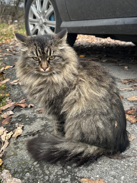Fant en veldig kosete katt ute på tur. Sist jeg traff på denne katten (i samme område) hadde den halsbånd (med gps tror jeg), mens i dag manglet halsbåndet - og den hadde utrolig mange klumper i pelsen :/ Ble derfor litt bekymret