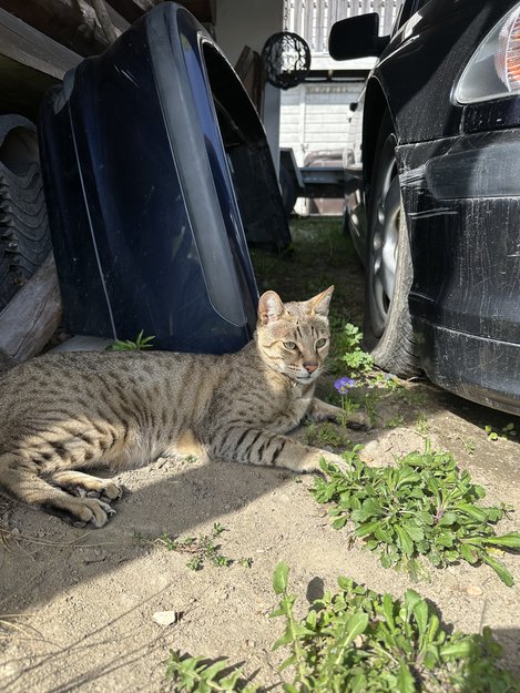 Katten har forskjellige brun nyanser i typiske stripeformer for rasen. Han har ett rosa/blått halsbånd. Rundt halsbåndet henger det en applewatch, i tilfelle han kom seg ut, men den er nå ikke sporbar lenger. Katten er chippet og står på svigerfar