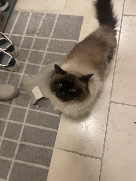 Katten ble sett hos naboen i helgen, skrikende. I dag kom den her, den er avmagret, det kjennes ut som om den har en chip i nakken (jeg må jo ta den til Dyrebeskyttelsen for å teste) den har en stygg øyebetennelse. Er veldig tam og kjærlig. Men jeg har ikke klart å sjekk om det er hann eller hunn katt. Men her i huset bor en diger gammel hankatt, så dette går ikke godt mht at den nok vil bli jaget vekk!