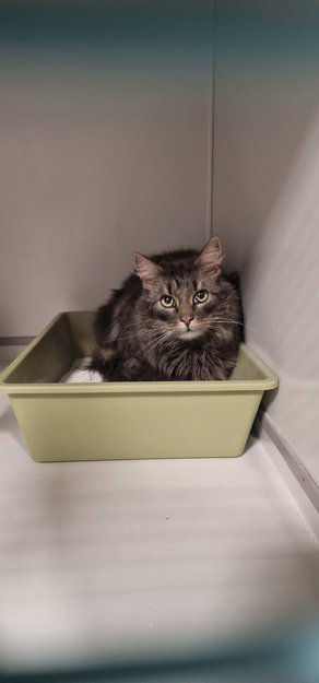 Pus dukket opp i et industriområdet. Full av floker. Ikke fått sjekket for chip eller kjønn enda. Pus blir ivaretatt av Hjerte for hjemløse katter