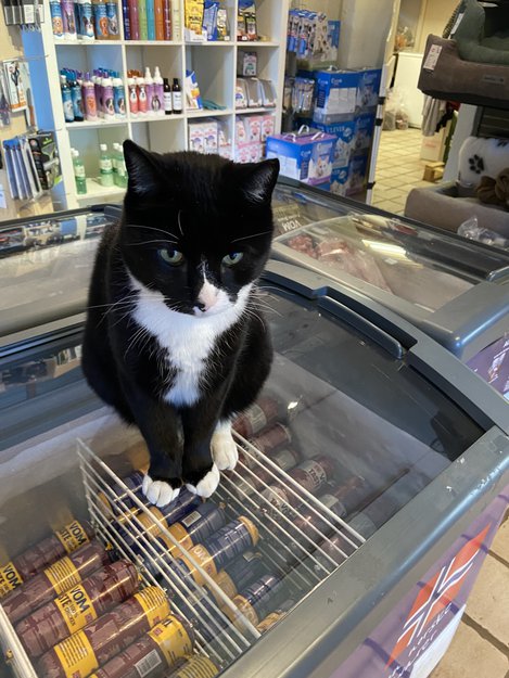 Fin svart og hvit katt, kosete og fin i pelsen. Begynt å oppholde seg rundt butikken til Din Beste venn i Ljabruveien 87.