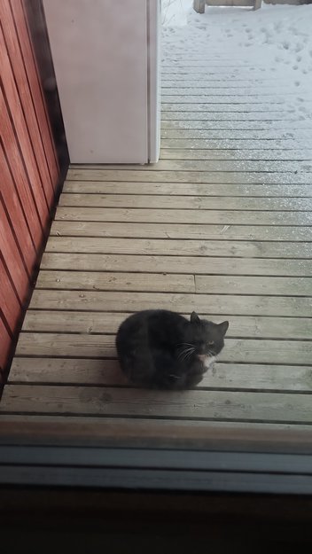 Katten satt utenfor hos meg i nesten 2 døgn i strekk og mjaua og skrapa på vinduet og ville inn. Tok den inn da det ble minusgrader ute(-10). Vært hos veterinær og sjekka for chip,men den var ikke chipet.
