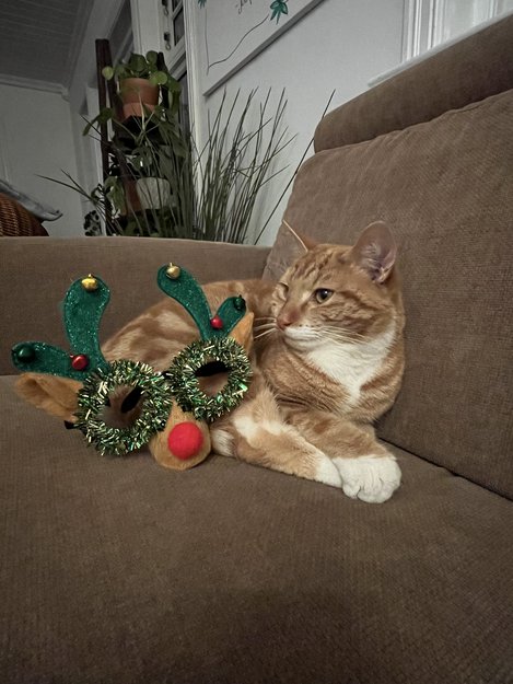 Han er en orange katt, med striper (litt sånn tigerstriper) med brun og hvit. Han er halv skipskatt så han har en ekstra tå, men den er ikke synlig med mindre man fremkaller den. Han er kort/middels lang pels, hvit på brystet og er kastrert men ikke chippet