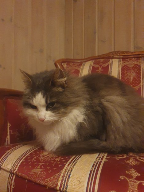 Fant denne pusen utenfor Øvre Verket da den kom skrikende mot meg. Virket tynn og kald. Veldig kjærlig og pratsom.