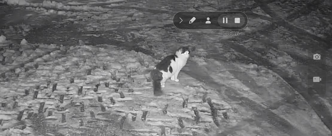Ble først observert 21.10.25. Vi trodde den bare var en kort tur innom, men i dag, 23.11.25 så vi den igjen. Den virker sky og sprang inn på låven da den så oss. Mulig den har vært her hele tiden, men at den har holdt seg skjult for oss. Bildet er fra kamera om natten.Håper noen kjenner den igjen så den kan få komme hjem.