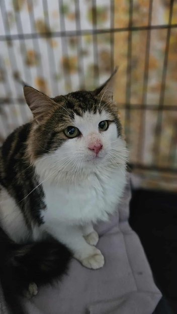 Ukastrert, ikke chippet, redd men kan klappes noe, var veldig sulten.