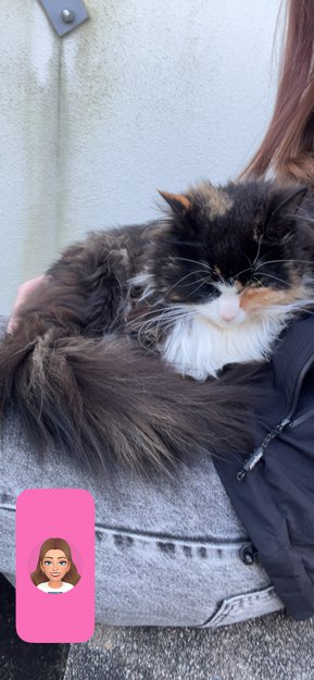 Er en veldig kosete katt som går rundt Karmsund men den hadde mye klumper i pelsen og hørtes litt syk ut, jeg prøvde og banke på litt rundt men ingen visste om det var noen sin