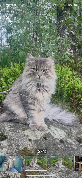 Blanding av skogskatt og Sibir. Grå spraglete, langhåret. Medium stor og antagelig rundt 5 kg.