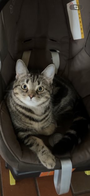 Hun er flerfarget svart, beige, grå og brun ish. Mye mørkere på ryggen og ansiktet hennes er mer lyst og pelsen på magen er også lysere. Hun har ganske lange værhår og øynene hennes er lyse grønn/gule. Ansiktet er mer beige også er rundt munnen hennes ganske hvit. Hun har også spraglete striper på seg og den typiske M mønsteret i pannen. Det er ikke alltid hun sier ifra eller mjauer mye.