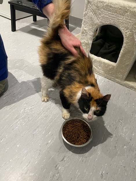 Brun, svart og hvit hunnkatt funnet i Øygarden