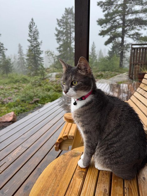 Katten er innekatt, trolig redd og gjemmer seg i nærheten av hytter, boder, under terrasser, steinrøyser eller i skogen. Ta kontakt på 94224410 eller 41126275, om du ser han.