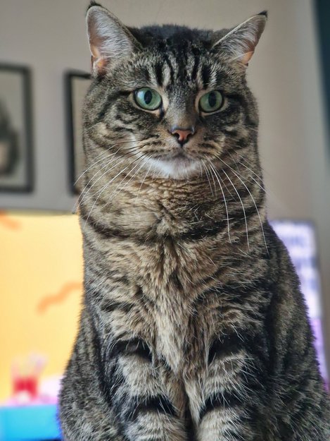 Har en ganske lavthengende "primordial pouch" (hengemage) som vaier frem og tilbake når hun går. Er ikke veldig glad i folk, men tam og snill med folk med rett tilnærming.