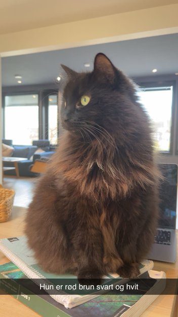 Hun trives godt ute, men på denne tiden av året pleier hun å ha kortere turer der hun er inne flere ganger i løpet av dagen. Hun har vært borte i max en uke i fortiden. Hun er 7 år gammel, veldig sjenert og forsiktig som ikke ville kommer opp til deg på gaten.