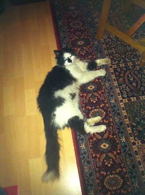 Katten ble funnet i forkommen og svært avmagret tilstand utenfor en kebab/sushi-bar på Løvenstad, hvor den i følge bar-eier hadde oppholdt seg en ukes tid. Den hadde av og til sovet på deres trapp, og ble observert spisende på avfallsmat. Bar-eier fortalte at katten stod å ventet på dem ved åpningstid for å få mat. Det ble aktuelle dag observert at det hadde blitt satt ut en skål med melk til den. Katten var svært kontaktsøkende.