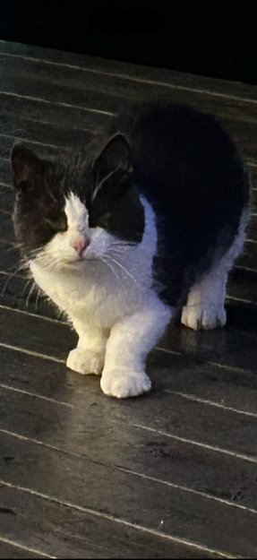 Sort/hvit katt funnet i Fevåg.