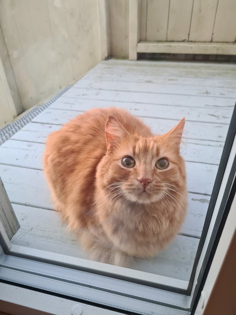 Dukket opp utenfor dør og mjauer