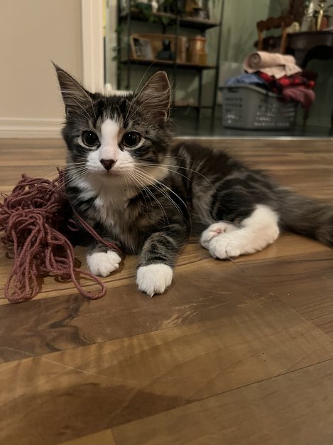 Grå/ svart / hvit hunnkatt savnet i Grimstad