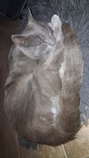 Han er en slank hankatt, litt redd mennesker og høye lyder. Han er grå med SVAKE hvite sjateringer