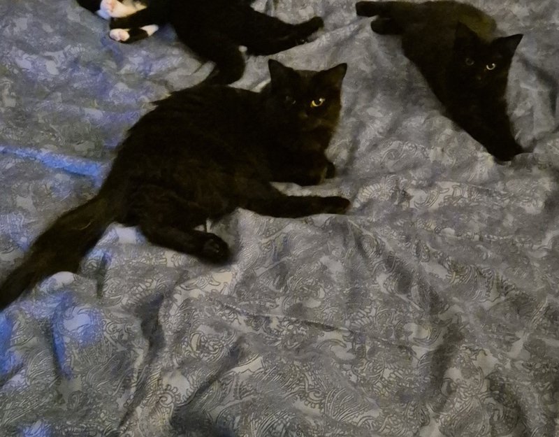Little jenteungen vår og hennes mor forsvant igår kveld, de må ha kommet seg ut en dør på en eller annen måte, vi har letet hele huset etter de og den andre kattungen vår har mjauet etter mor og søster i hele huset og utenfor huset.. de er inne katter, og går aldri ut selv når dører eller vindu står på gløtt, så noe må ha skremt de.. vi har vært rundt hele nabolaget og puset på de! Men ingen funn så langt, leggrr ved bilde av mor og datter som ble tatt for 4 dager siden