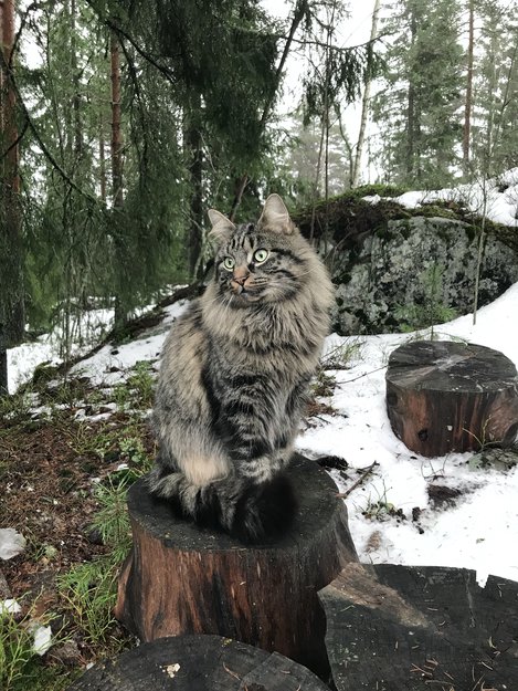 Han er en ute/inne katt, men de siste 2 ukene har han nærmest snudd i døra. Slapp han ut fredag kveld for en liten luftetur før natta og regnet med at han bare ville gjøre som han har gjort etter at snøen og kulda kom - inn etter 5 min. Men nei etter det er han søkk borte. Jeg satt oppe til kl 3 på natta, etter det sjekket jeg ca hver halvtime gjennom hele natta uten resultat. Vi er virkelig bekymret for han nå i kulda.