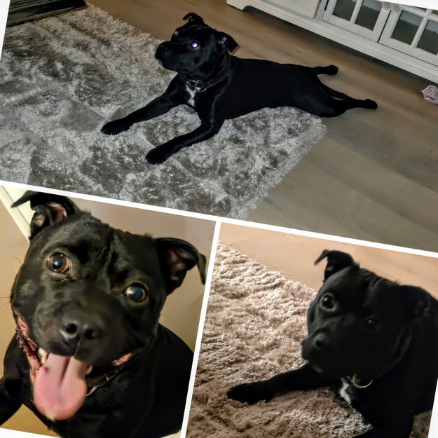 Sort med litt hvitt på brystet. Lyder navnet Robbin, veldig snill, ikke farlig å nærme seg. Liten lyseblå plikt på tungen.