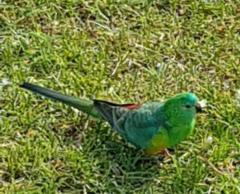 Grønn, gul, blå, rød fugl funnet i Risør