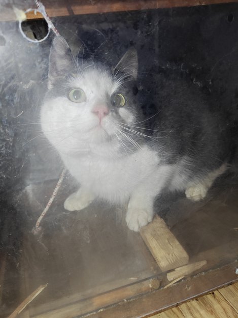 Katt observert til og fra hos oss en stund. Dårlige bilder, men den er lysegrå og hvit. Svært sky. Ta kontakt om noen kjenner til den, ellers vil vi fange den inn.