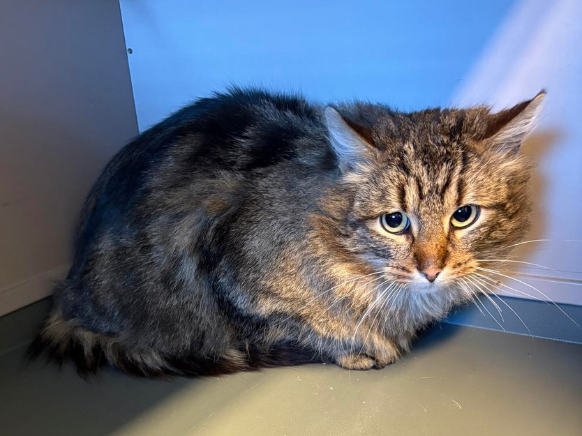 Denne hannkatten kom inn til oss fra Storås i Orkland kommune, hvor han hadde blitt observert gående hjemløs ute over tid sammen med flere andre katter. Han er dessverre verken kastrert eller ID-merket.