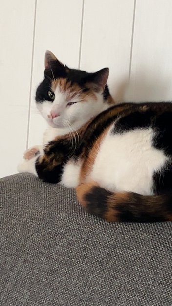 Veldig spesiell i fargene. Ganske kraftig i kroppen. Typisk «hengemage» som mange kastrerte katter har.