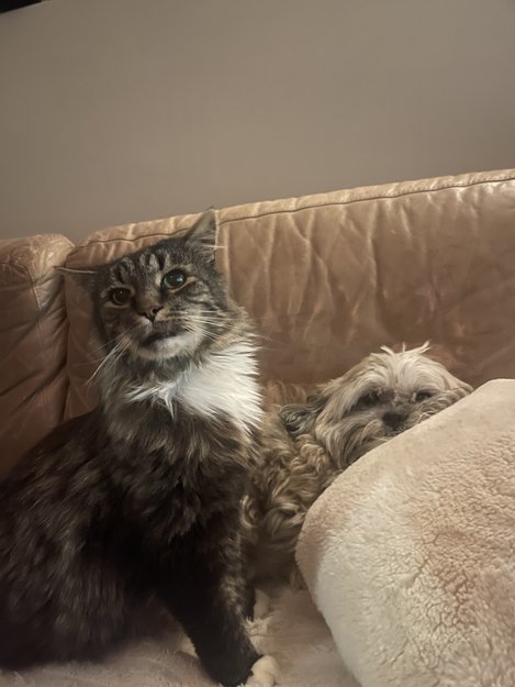 Kan være litt redd for folk han ikke kjenner, men hjemme er han veldig sosial med oss og to små hunder. Han kommer når vi roper navnet hans.