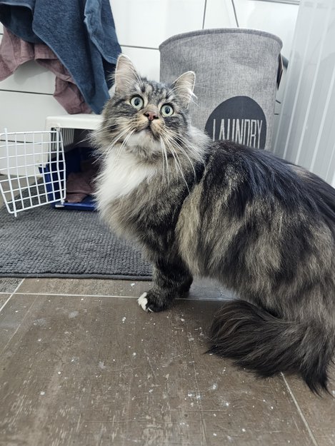 Svart, grå og hvit hunnkatt funnet i Steinkjer