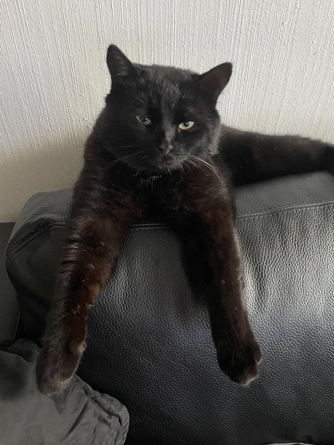 Rudolf kom seg ut av kattebagen etter en tur hos dyrlegen i går! Han løp i retning bak Joker på Ljan.