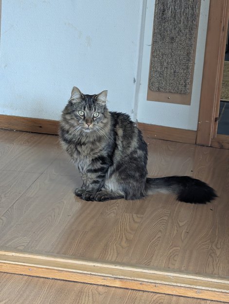 Brun, svart, grå hannkatt savnet i Os