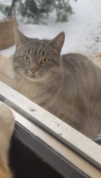Katten dukker opp til alle døgnets tider tiltross for kaldt vær. Nærgående og oppsøkende, men smetter unna hvis man prøver å få kontakt. Forsøkt å finne eier via Facebook men ingen melder seg. Ta kontakt dersom du kjenner igjen katten og vet hvem som eier den!