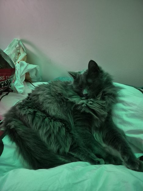 Velstelt og fluffy grå pels