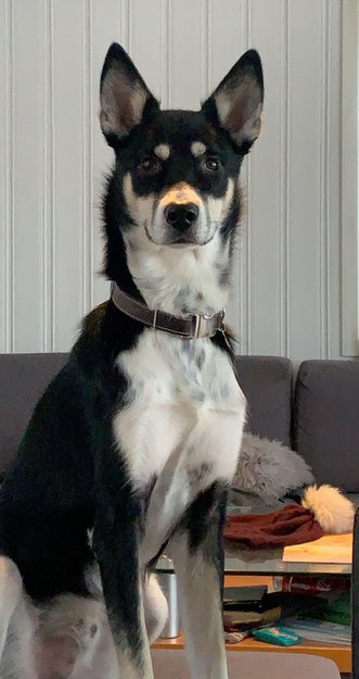 Svart hvit brun hannhund savnet i Steinkjer