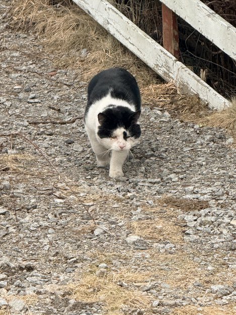 Katt som har oppholdt seg i Gamle somavei i flere måneder. Katten har sår i ansiktet og halter. Mulig hjemløs?