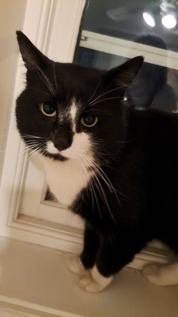 Ukastrert hannkatt. Ikke funnet noe chip. Han har vært i området her siden i sommer. Spesielle poter, og kort pels. Veldig sky og redd, men ikke aggressiv.