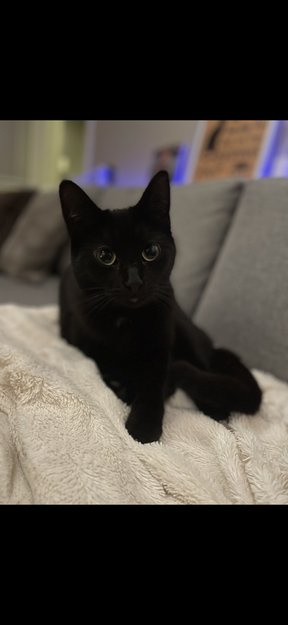 Helt svart, kun litt hvit på halsen. Hun er liten av seg og kan nok kanskje oppfattes som en katt som ikke er ferdig utvokst. Hun er 3 år gammel