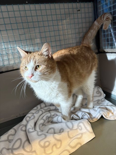 Denne hannkatten kom inn til oss fra Krutvika på Frøya, hvor han hadde blitt observert gående ute. Han er dessverre verken kastrert eller ID-merket.
