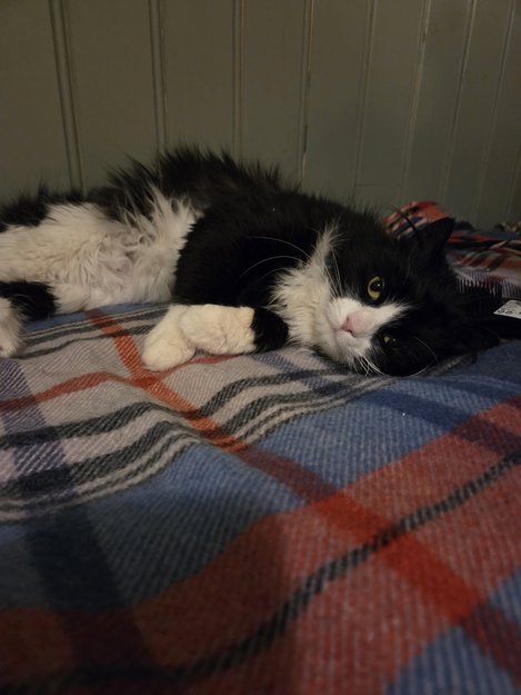 Han viste seg først som en engstelig og redd katt. Men har nå på rekordtid blitt en skikkelig kosegutt. Noe som tyder på at han tidligere har hatt et hjem ❤️Han har frostskader på poter og veldig flokete pels som vi har måtte barbere. Men ellers frisk og fin,ca 3 år gammel.
