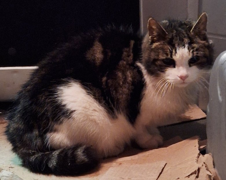 Litt kortere hale enn normalt. Veldig pen katt. Virker tam, og tror absolutt den har et hjem.